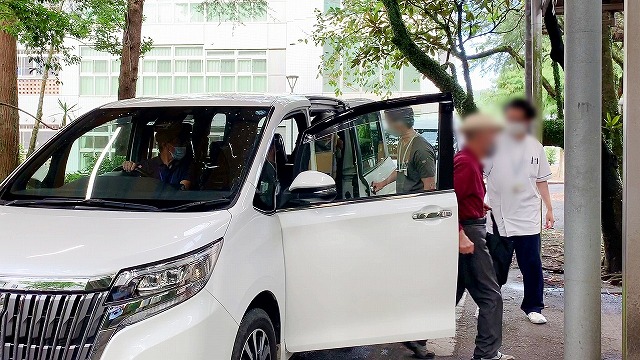 送迎について | お迎え:送迎車がお伺いします。デイケアに9時ごろには到着するように、時間・ルートを調整してご自宅まで伺います。 送り:デイケアを午後3時ごろ出発します。同乗者の方で、近い方から順、ご自宅までお送りいたします。 |